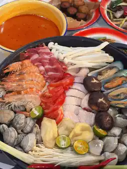 This hotpot is incredibly fresh and delicious 👍 The Thai-style sour-spicy flavor is so appetizing! Huge portion with tender chicken, bouncy prawns, mussels, fish tofu, and more... Can't stop eating it‼️