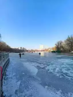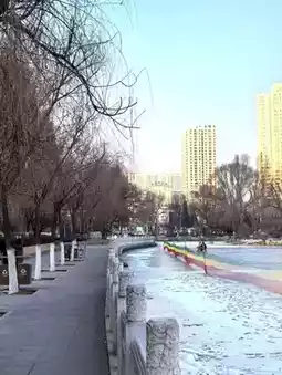 During the winter months, Xining People's Park takes on a distinctly serene and picturesque character. The cold weather transforms the park into a tranquil retreat, offering a unique experience for those who visit. The lake, a central feature of the park, often freezes over, creating opportunities for ice-related activities. Locals and visitors alike may enjoy walking on the frozen surface (when deemed safe) or simply taking in the peaceful, icy scenery. Winter also brings fewer crowds, making it an ideal time to appreciate the park's natural beauty in a quiet and reflective atmosphere. This season provides a perfect setting for relaxation and a chance to connect with the calmness of nature amidst the urban environment. #frozenlake