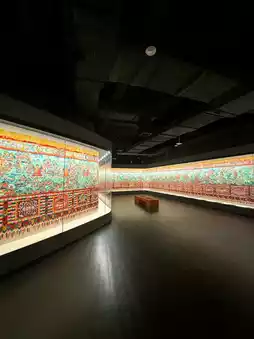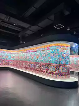 The Museum's Treasure - Giant Embroidered Thangka "Panoramic View of Chinese Tibetan Culture and Art": 618 meters long, listed in the Guinness World Records, considered an encyclopedia of Tibetan art, showcasing Tibetan history, religion, and culture in a spectacular way.