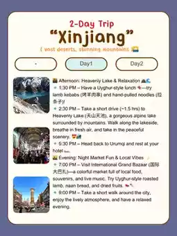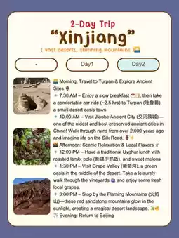 Looking for an easy, scenic escape with vast deserts, stunning mountains, and amazing local food? ๐๏ธโจ Xinjiang (ๆฐ็) is the place to be! This trip is slow-paced, perfect for soaking in the breathtaking landscapes, enjoying the rich culture, and trying delicious Uyghur cuisine.