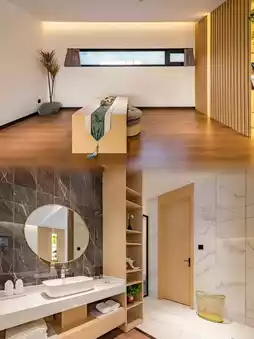 The designer skillfully uses the changes of light and shadow to create a quiet or warm atmosphere at different times. The details show the ingenuity, from a handmade pottery to a painting by a local artist, all of which reflect the respect and inheritance of the local culture.