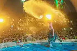 Ride the waves in the wave pool and dance to cool beats at the music party.