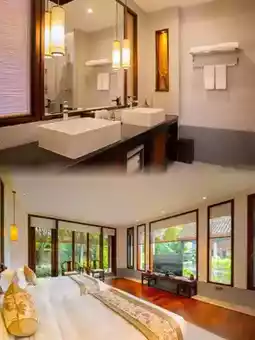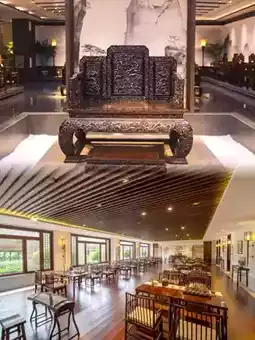 The hotel has 290 luxurious rooms of various types, with rich room types and luxurious interiors, equipped with a full set of Laotian rosewood Ming-style furniture. Decorated with Chinese paintings, antiques, handicrafts, and other high-end art boutiques, the overall design is simple and elegant, with a unique Lingnan Zen style.
