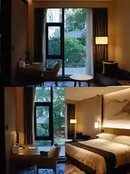 The rooms are spacious, with floor-to-ceiling windows overlooking the garden's beautiful scenery.