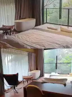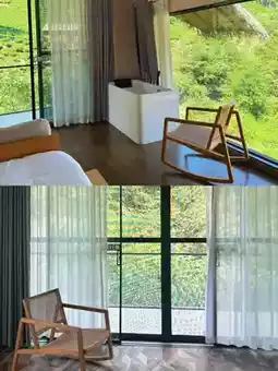 The homestay takes "tea" as its soul, cleverly blending Xinyang's thousand-year tea culture with modern aesthetics. The architecture uses local materials such as logs, blue bricks, and bamboo weaving. The eaves are low, like the initial display of tea buds. The courtyards are dotted with pottery pots, stone mills, and old tea sets, all exuding a simple rural atmosphere. The guest rooms are named after tea: "Yunjian," "Cuifeng," "Wuya"... Each room hides a unique view: either floor-to-ceiling windows facing the panoramic view of the tea mountain, or a private terrace shaded by bamboo forests. When night falls, brew a pot of Maojian, watch the stars fall into the tea fields, and it seems that only a cup of tea remains in the world.