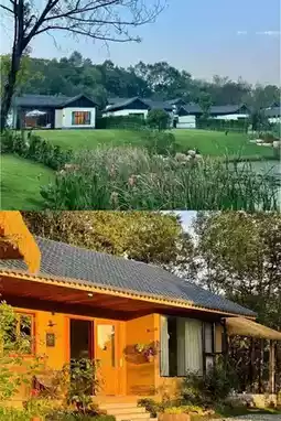 An art space embraced by pine forests, where transparent glass hangs adorned with moss and ink paintings, and the red brick tiles of old houses coexist with steel frames. Follow the mountain path to encounter tea houses and courtyards, sunlight filtering through bamboo leaves, handmade Maojian tea swirling in ceramic cups. A wood-fired hot pot simmers in the courtyard, the aroma of braised fish mingling with the freshness of mountain mushrooms, tantalizing the taste buds. As dusk washes over the tree shadows and tea fragrance of the mountain guesthouses, the chirping of insects by the bedside keeps watch over the city's clamor.
