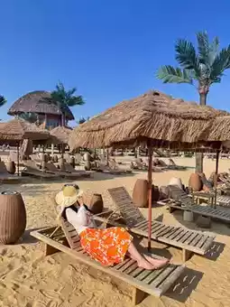 1ļøā£ Beach loungers: Pretend you're in Sanya! Blue skies and white sandājust lying down screams vacation chic.