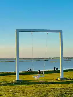 Henan’s version of the "Maldives"—chapel, swings, sandy beach, mini train, lawn, and mushroom huts. Perfect for Instagrammable shots on sunny days.