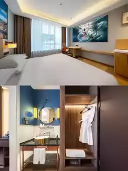 The moment you enter the lobby, you’re dazzled by vintage chandeliers and a wall of old photos! The rooms have 270° floor-to-ceiling windows, perfect for city skyline views by day and star gazing at night✨ A special shoutout to their beds—zero-pressure latex mattress + 60-thread-count cotton bedding, you fall asleep instantly! The bathroom features Herborist herbal products.