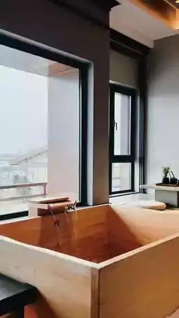 The architecture is grand yet elegant, with spacious, bright, and cozy rooms. The room I stayed in featured an imported hinoki wood soaking tub – after a bath, the subtle woody fragrance lingered, creating an incredibly relaxing atmosphere. The resort also has nine high-end villas, each with indoor and courtyard hot springs, offering ultimate privacy. I’m definitely bringing my family here next time!