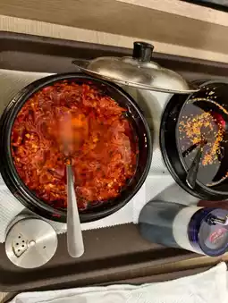 Today, I ordered red oil wonton noodles, spicy fried pancakes, fried pork ribs, and tomato egg drop soup!