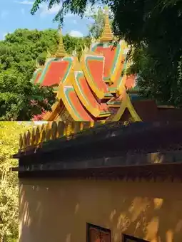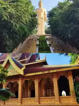 🌈Sunlight filters through layers of green leaves, illuminating the Dai bamboo houses and the golden, magnificent Buddhist temple. This is Mengle Great Buddha Temple in Xishuangbanna, Yunnan, a place full of mystery.👣