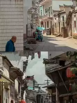 📍 Inkstone Pool Reflection: Crouch low to capture the symmetrical illusion of the town buildings and Qiyun Mountain (wide-angle lens)