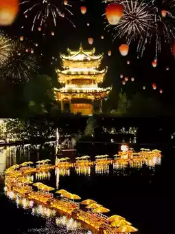 18:30 Fireworks Show: Golden lotus blooms in the town night sky, best spot: Hengjiang Riverside boardwalk, use the water surface for double brilliance.