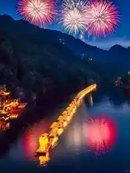 1️⃣ Golden Dragon Dance: Dozens of rafts form a golden dragon on the river, lights reflecting on the water like a scene from mythology—photos can’t capture the awe!