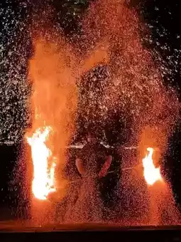 2️⃣ Iron Fireworks: Molten iron at thousands of degrees splashes into the night sky, raining down like meteors—arrive 30 minutes early to snag a front-row spot at the visitor center square!