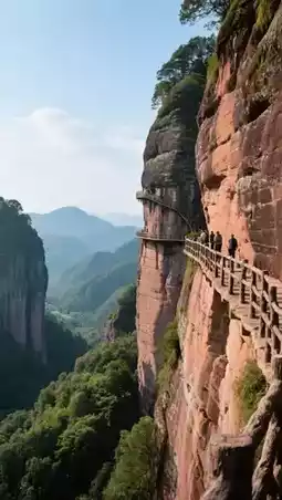 - ✅ Cliff Plank Road: Walking along the cliff wall, with a thousand-foot abyss below, heart racing
