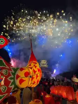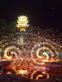 In the evening, it's even more lively π! Fish lantern dances π, golden dragon parades π, shadow puppet shows π, iron flower performances π₯, and fire pot fireworks π β each is a romantic display of intangible cultural heritage, leaving visitors enchanted!