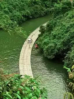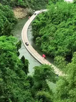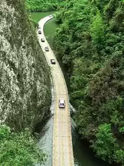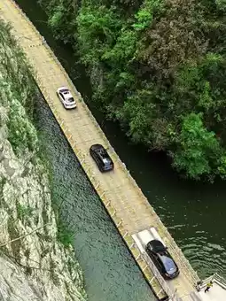 This 318-meter-long wooden floating bridge spans an emerald lake. When vehicles cross at a steady 20 km/h, the bridge sways with the waves, creating unique S-shaped ripples—dubbed "China's Most Beautiful Floating Bridge." For best photos, capture the panorama from observation decks or drone angles; sunny days offer oil-painting textures while rainy days create ink-wash aesthetics.