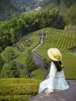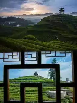 In midsummer, Wujia Terrace is a **natural air-conditioned room at 30°N latitude**! The morning mist drapes over tens of thousands of acres of tea gardens like emerald waves. At an altitude of 800-1000 meters, the mountain breeze brings refreshing coolness, with an average summer temperature of only 22°C. Stroll along the wooden plank walkway to the summit of **Long'en Pavilion**—the story of the "Imperial Grace" plaque bestowed by Emperor Qianlong has been passed down here for a century. Overlooking the landscape where sea of clouds and tea fields intertwine, every snapshot is a masterpiece.