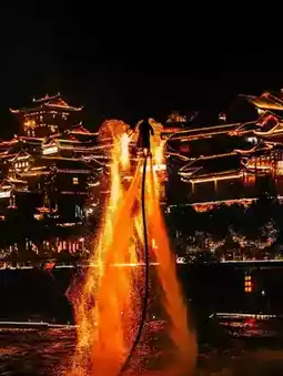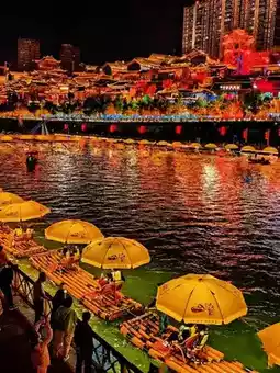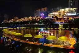 When visiting Xuan'en, a must-see is the Fairy Mountain and Tribute Water Scenic Area. Located in the heart of the county, it's the only national 4A-level tourist attraction in Hubei centered around a county town. The Tribute Water River flows like a silken ribbon, connecting over ten scenic spots including Moda Tower and Wenlan Bridge. By day, Wenlan Bridge—a replica ancient covered bridge—showcases the elegant grandeur of Dong and Tujia architectural styles, harmonizing with the riverside scenery like a tranquil landscape painting. At night, Moda Tower sparkles with lights, and from its rooftop, you can gaze upon the river's glittering reflections, as if in a dream. Glide along the water on a "Dragon Tour of Tribute Water" bamboo raft, accompanied by dancing musical fountains and lights on either bank, feeling transported into a fairy tale.