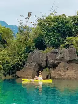 - Moọc stream tourism: I went to Moọc rapids, the entrance fee and entertainment fee was 180k/person, the water here is very cold (like ice water in the refrigerator), jumping Um and rowing a boat is also very fun.