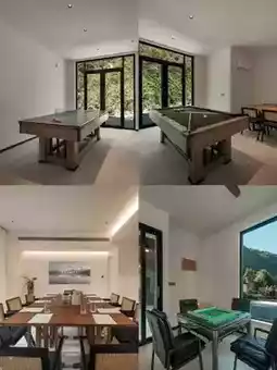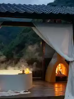 The public areas of the homestay are rich and varied, including the lobby bar 🕴 restaurant 🍽 children's playground 👶 entertainment room 🃏 hot spring area ♨️ outdoor sunken leisure area 🛋 as well as meeting rooms 👥 and bars 🍾, etc. In the morning, guests can enjoy a rich breakfast in the restaurant to start a good day. The hot spring pool under the outdoor wooden house is paired with a real fire fireplace, which is a great choice for bathing in winter. In their spare time, guests can sit in the outdoor leisure area with a few friends, chat and enjoy a relaxing time.