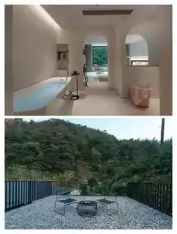 The B&B is backed by green mountains and faces the stream. It was designed by a professional B&B design team. The overall building is mainly white, with dark gray in some parts. The appearance is simple and elegant. Under the natural green reflection of the village, it is fresh and natural. The decoration is based on the popular wabi-sabi style, which is simple, elegant and fashionable. Room