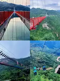 - One-day tour route: Starting from the visitor center, take the Qingyun Ladder sightseeing elevator directly to the middle of the canyon, then walk along the cliff plank road to the Cloud End Glass Bridge to experience the thrill of high altitude, then go to the 520 Viewing Platform to overlook the entire canyon, and finally follow the canyon trail to admire the natural landscapes such as streams and waterfalls.