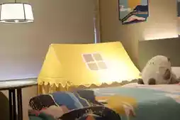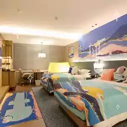 The room is about 43 square meters, very spacious and comfortable, giving children enough space to move around. It is a themed parent-child room, and is thoughtfully equipped with children's toothbrushes and slippers...