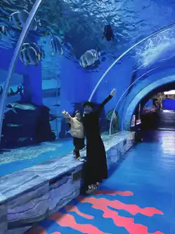 🐬It has three undersea tunnels, overhead and around are swimming fish, as if in a blue dream, this feeling is simply too wonderful!