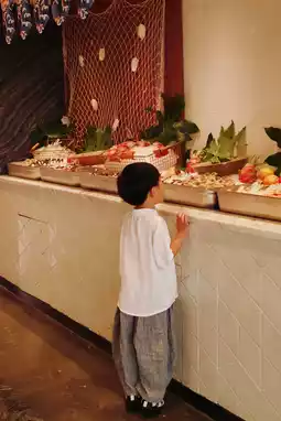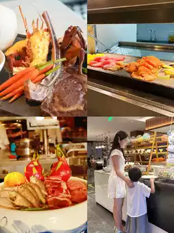 🦖 The food was thoughtful too: the buffet dinner had roast whole lamb and lobster. The kid grabbed lamb with his little claws, but his favorite was the surf and turf dish—Tomahawk steak with a fragrant bone, juicy meat, crispy-skinned tender pigeon that the older kid loves, and the small green lobster with a fresh sweet flavor wrapped in garlic, every bite was delicious to the core. My husband praised the taste and wanted another serving~