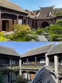 Inside is a Late Qing Dynasty courtyard with gray bricks and tiles,