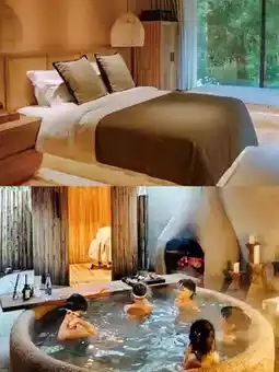 3. ♨️ The [Private Hot Spring] everyone cares about most! Our room type included a one-hour private hot spring experience. You need to book a time with the butler in advance, and they will provide afternoon tea. The separate charge is CNY 298. I recommend buying a package that includes it. The private hot spring has a wild luxury feel and is very photogenic (P1-P2). 🍜 [Restaurant]: Breakfast is a set meal with a main course chosen at check-in (P6). I recommend the chicken soup rice noodles, which are rich and flavorful! Dinner also offers Sichuan cuisine and hot pot.