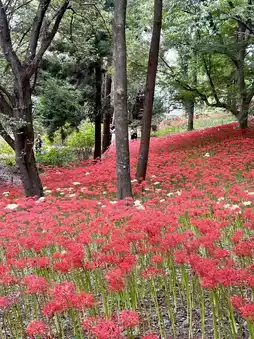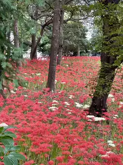 I recently visited Murakami Ryokuchi Park in Yachiyo City to see the higanbana, also known as red spider lilies. As I walked through the park, I was mesmerized by the breathtaking scene—an endless carpet of vivid red flowers stretching deep into the woods.