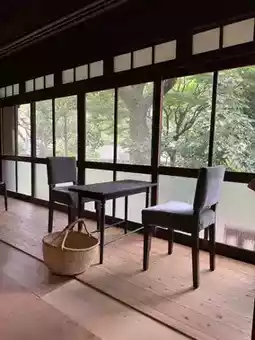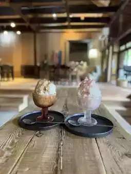A traditional Japanese-style cafe in a residential area in the mountains.