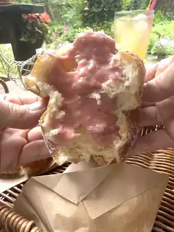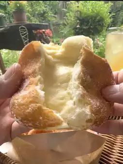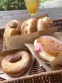 The donuts, filled generously with cream, were delightful. The freshly fried ring malasadas were hot and chewy.
