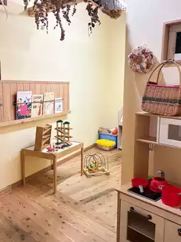 There's also a kids' space in the back, which would be great for kids once they start walking. ✨