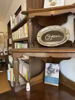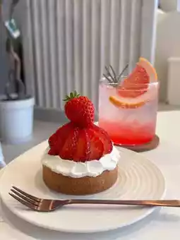 There's a cafe space in the back of the store where you can enjoy sweets and other treats
