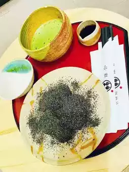 Their signature dish is warabimochi. That day, we ordered a set meal that included 10 black sesame warabimochi and a cup of hot matcha 🍵. You can also add your own brown sugar for a richer flavor 🤗🤗🤗. The warabimochi is incredibly tender, smooth, and sweet 😍😍😍. Ten pieces were quickly devoured, and paired with warm matcha 🍵, it was a perfect place to relax after visiting Yahiko Park on a cold day before heading to Yahiko Shrine⛩️.