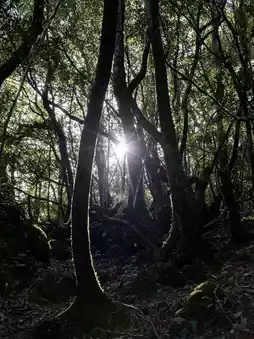The trail includes some challenging sections, such as crossing cliffs and streams, but overall, it was relatively easy to hike. After about two and a half hours of walking with breaks, I reached the moss-covered forest. The area is filled with ancient tree stumps and rocks densely covered in moss, with a cool breeze flowing through the air.