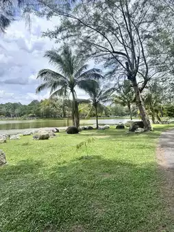 Phru Ba Koi Bird Park (Khwan Mueang Park) in Yala Municipality is another attraction within the Khwan Mueang Park. During the bird crowing festival, the competition is held here, attracting a diverse crowd. When there are no competitions, Yala residents like us often stroll, exercise, and run within the park. The atmosphere here is like a Swiss landscape, complete with pine trees, a river, and beautiful views. The air is fresh and healthy, and it's like a relaxing getaway. Picnic lovers can lay down a mat and enjoy the view. #Khwan Mueang Park Yala
