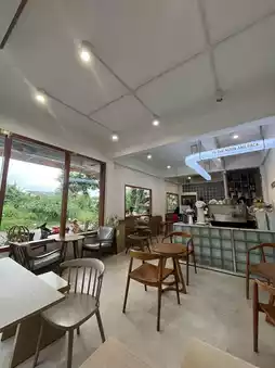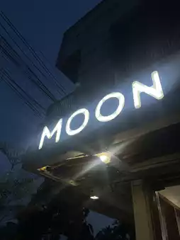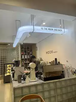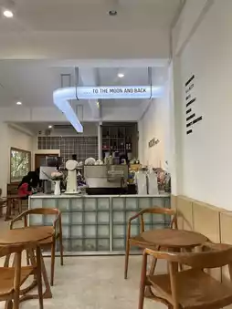 Hello everyone, today we're reviewing a super cute, minimalist cafe in Yala Province. This is MOON Café. The minimalist style of the cafe, with its white tones and wooden furniture, creates a warm and welcoming atmosphere. Plus, its location in Suan Khwan Muang adds to the relaxing and laid-back atmosphere.