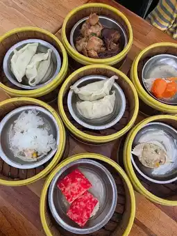 A wide selection of dishes include bitter melon dim sum (not too bitter), crab in shell, and emperor buns.