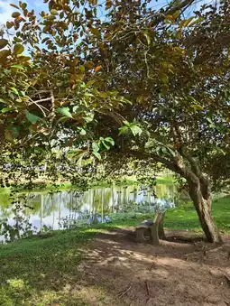 A standardized Java Sparrow Competition Ground at Suan Khwan Muang (Phru Bakoi), a public park in Yala Province. This spacious, shady area is a major source of ozone for the city. Highlights include a man-made seaside pond, rock formations, and pine trees. Interesting activities include strolling, exercising, pedal boating, and feeding fish.