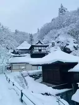 #Get discounts without counting on luck wanting to see a heavy snow Traveling to Tohoku area is not disappointed. At the end of December ❄️⛄️ The snow is very fluffy. Where do you look? Yamadara is a station located before Yamagata Station, if traveling from Sendai Station 🚞 is a small station. Walking along the path of the village, there will be temples and shrines. There are 1000 steps Up on the way there is a viewing point. Beautiful view, surrounded by snow-capped mountains. So beautiful that I forgot to be tired from Kan to go up the stairs.
