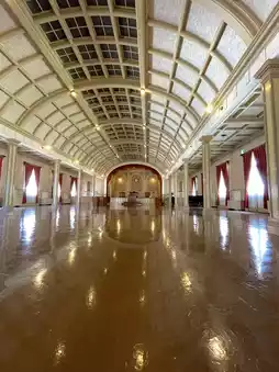 The large space is the former prefectural assembly building, and the kamaboko-shaped ceiling is wonderful.