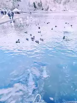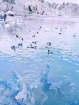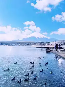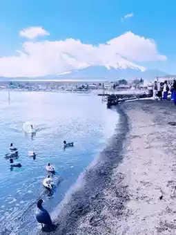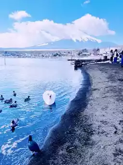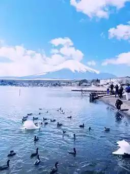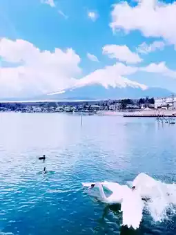 There are many snow-white swans in Lake Yamanaka. There are vendors selling swan feed nearby, so you can get close to the swans. There are also many large fish in the lake. You will be amazed by the beauty of nature and indulge in this peaceful paradise.
