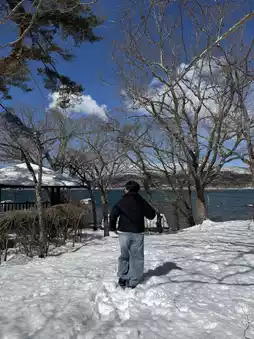 This is Yamanakako Park, a park right next to a lake with stunning mountain views. The word "beautiful" is a stretch. There are plenty of activities to do, including sightseeing, pedal boats, and a pavilion where you can sit and enjoy the scenery. There's also a convenience store nearby where you can buy groceries and eat. There are also restrooms, so the facilities are all there.