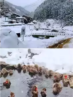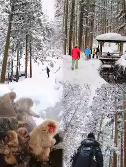This is also one of the most memorable attractions we have been to in Japan, monkeys are in the park all year round, there are about 150 to 160 monkeys in the monkey group in Nagano Prefecture has this special wild macaque monkey bathing hot spring ♨️ attraction, every winter also attracts many tourists to watch.